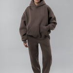 Ultra vastag, 300 g grammsúlyú, belül bolyhozott, prémium holland pamutkeverék anyagból készült kapucnis, kenguruzsebes melegítőszett. Minden egyes darab kézzel varrva, szabva és csomagolva saját budapesti műhelyünkben. Az ár a teljes szettre vonatkozik.