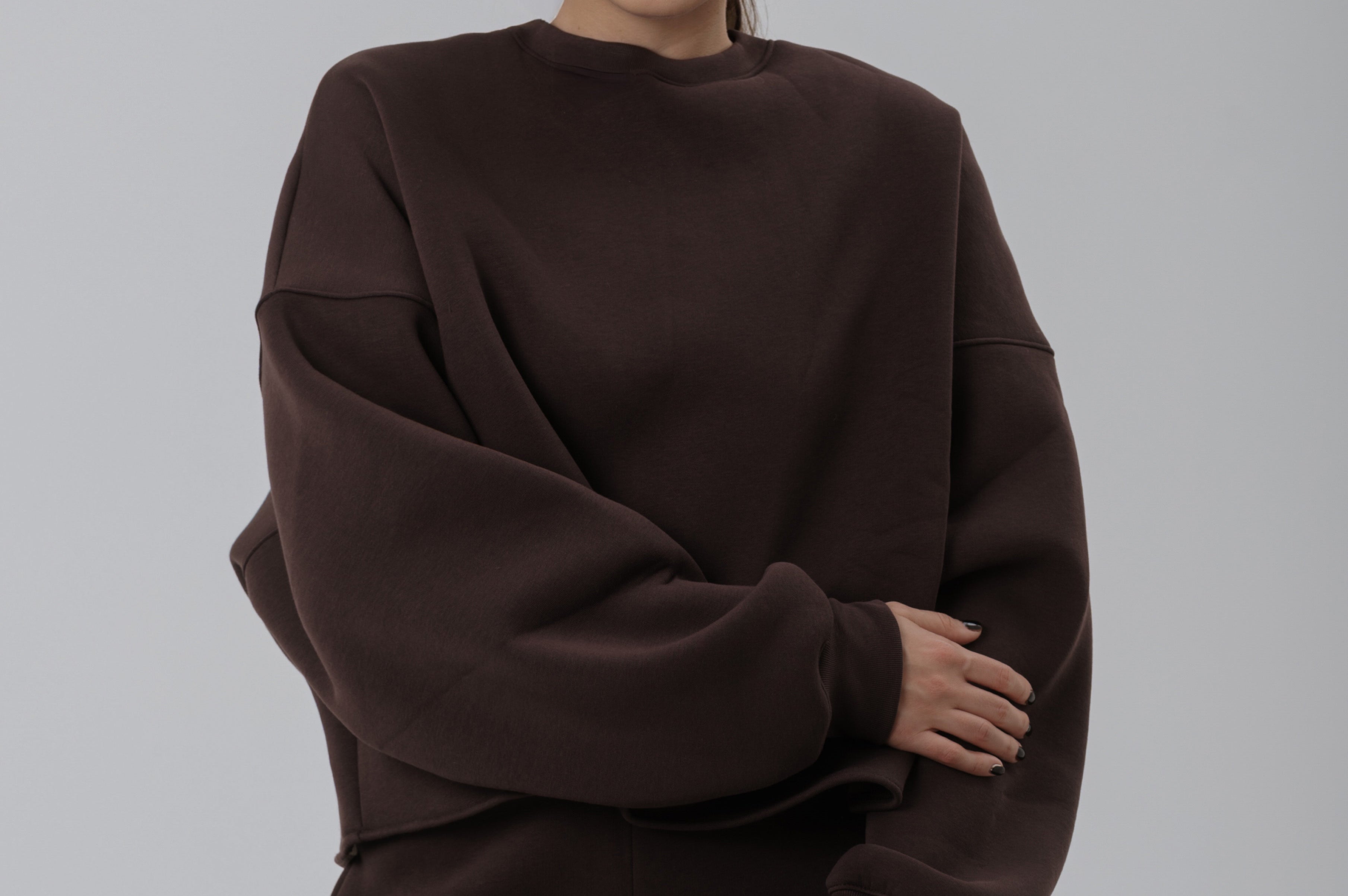 Ultra vastag, 300 g grammsúlyú, belül bolyhozott, prémium holland pamutkeverék anyagból készült melegítőszett környakú pulóverrel. Minden egyes darab kézzel varrva, szabva és csomagolva saját budapesti műhelyünkben. Az ár a teljes szettre vonatkozik.